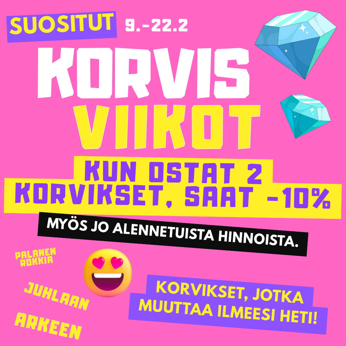 --> Kun ostat 2 korvikset, saat -10% , myös jo alennetuista hinnoista.